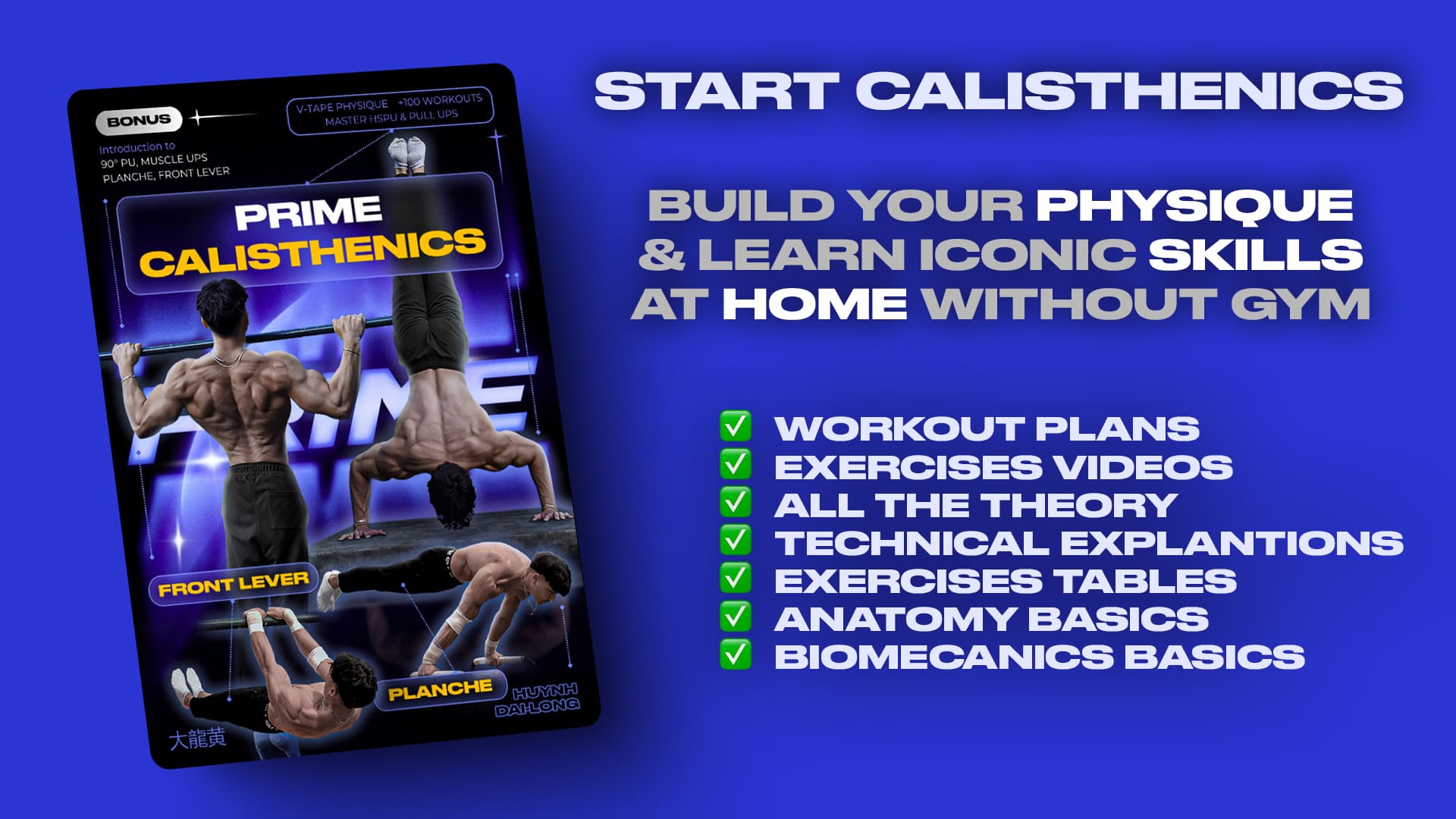 I studied sports science for 5 years, and I know exactly what it’s like to start from almost nothing (1 chin-up, 10 push-ups...). I know the frustration of trying to gain weight, the struggle to lose fat, the challenge of training calisthenics at over 75kg, and so on...